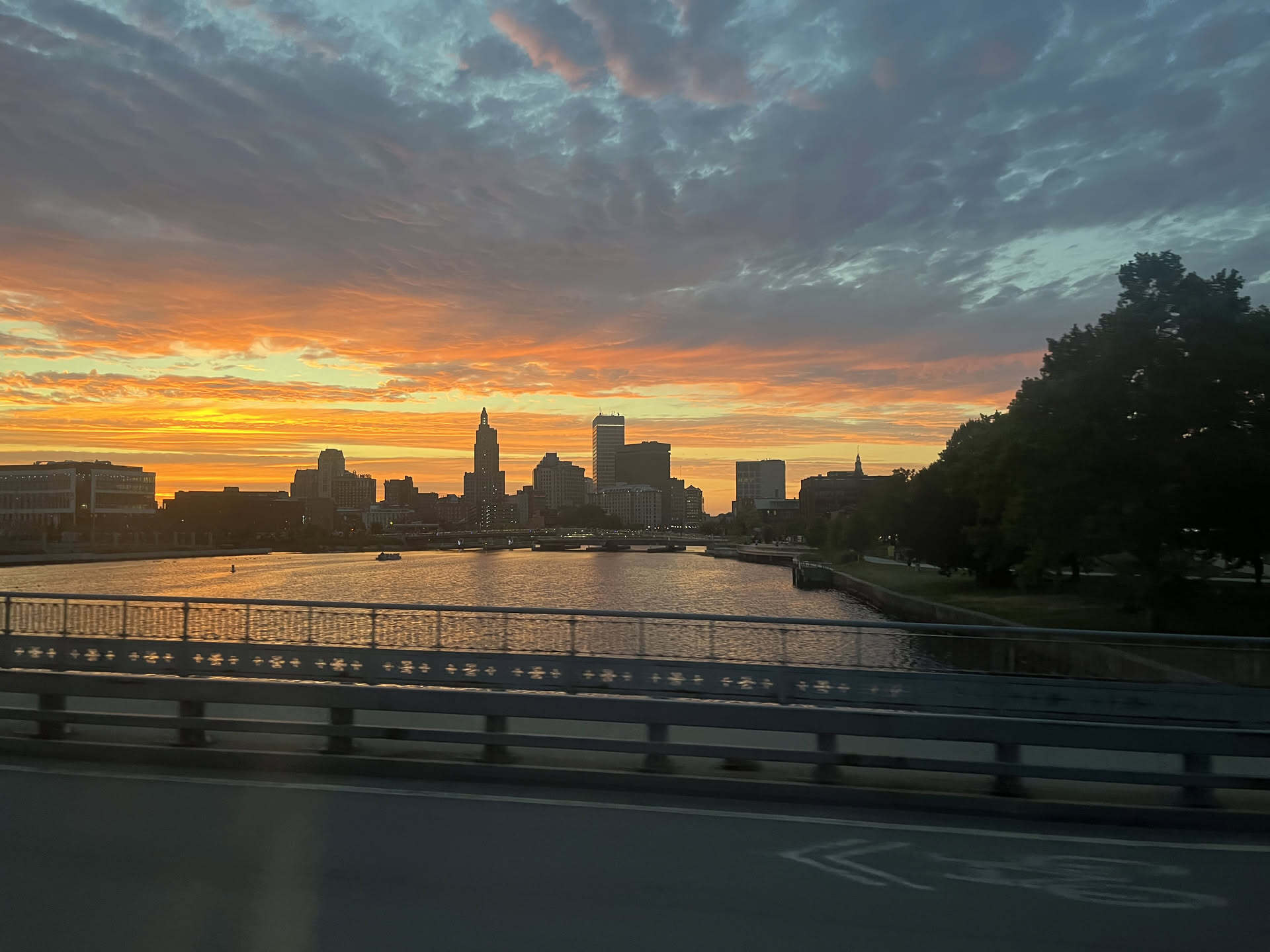 Providence skyline from the 92 bus, Point Street Bridge. (photo: Morgan Dethlefsen)
